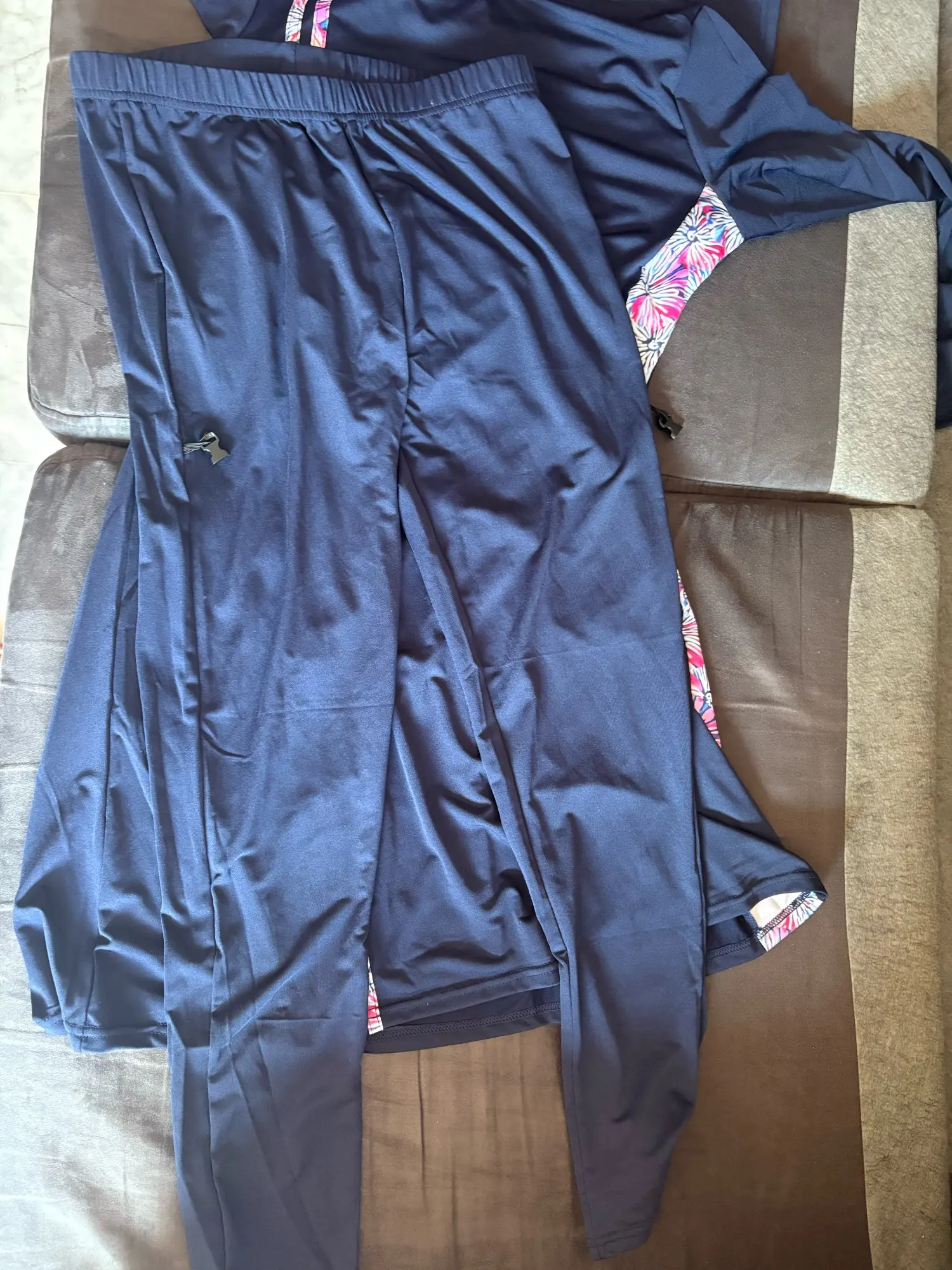 - Bottoms: Anti-slip leggings with drawstring waist (28" inseam)