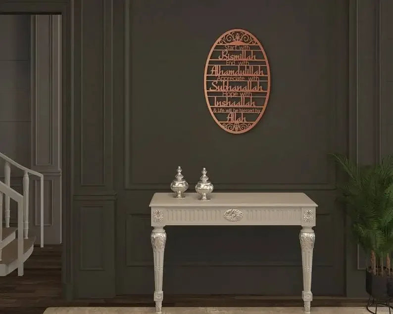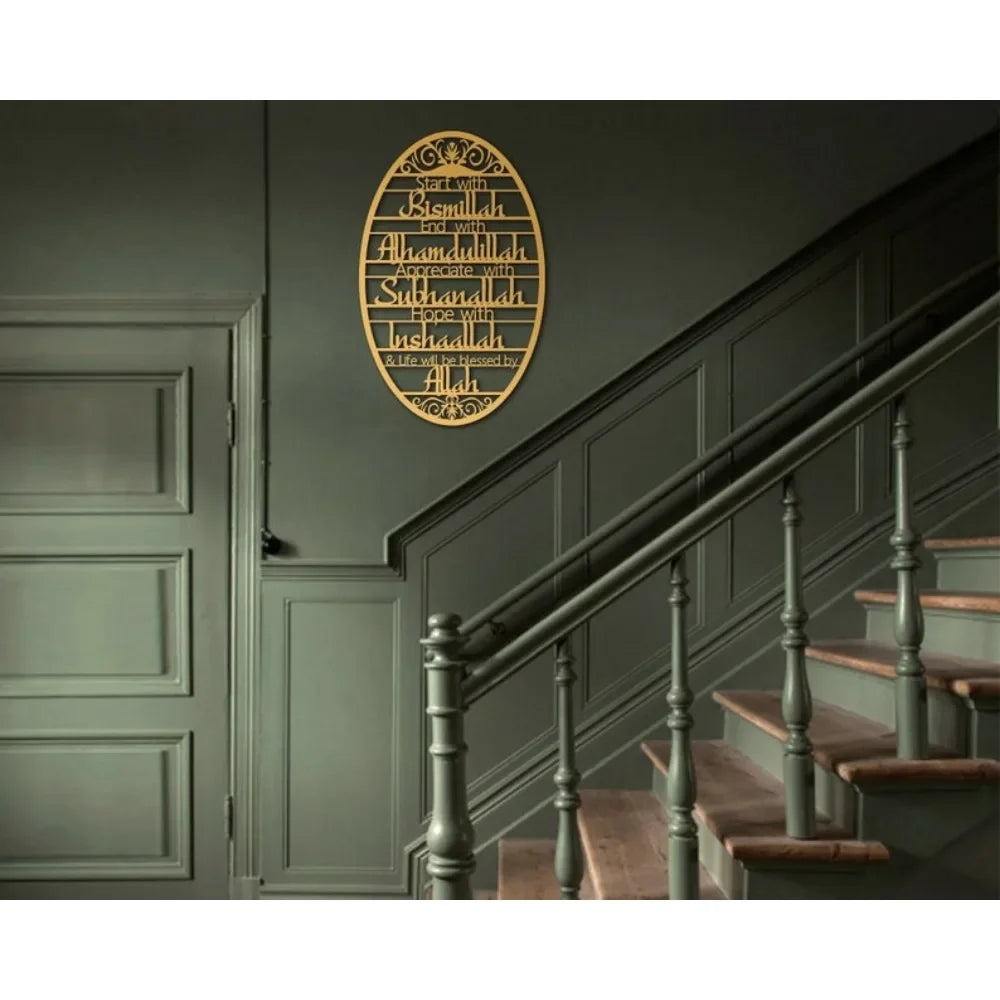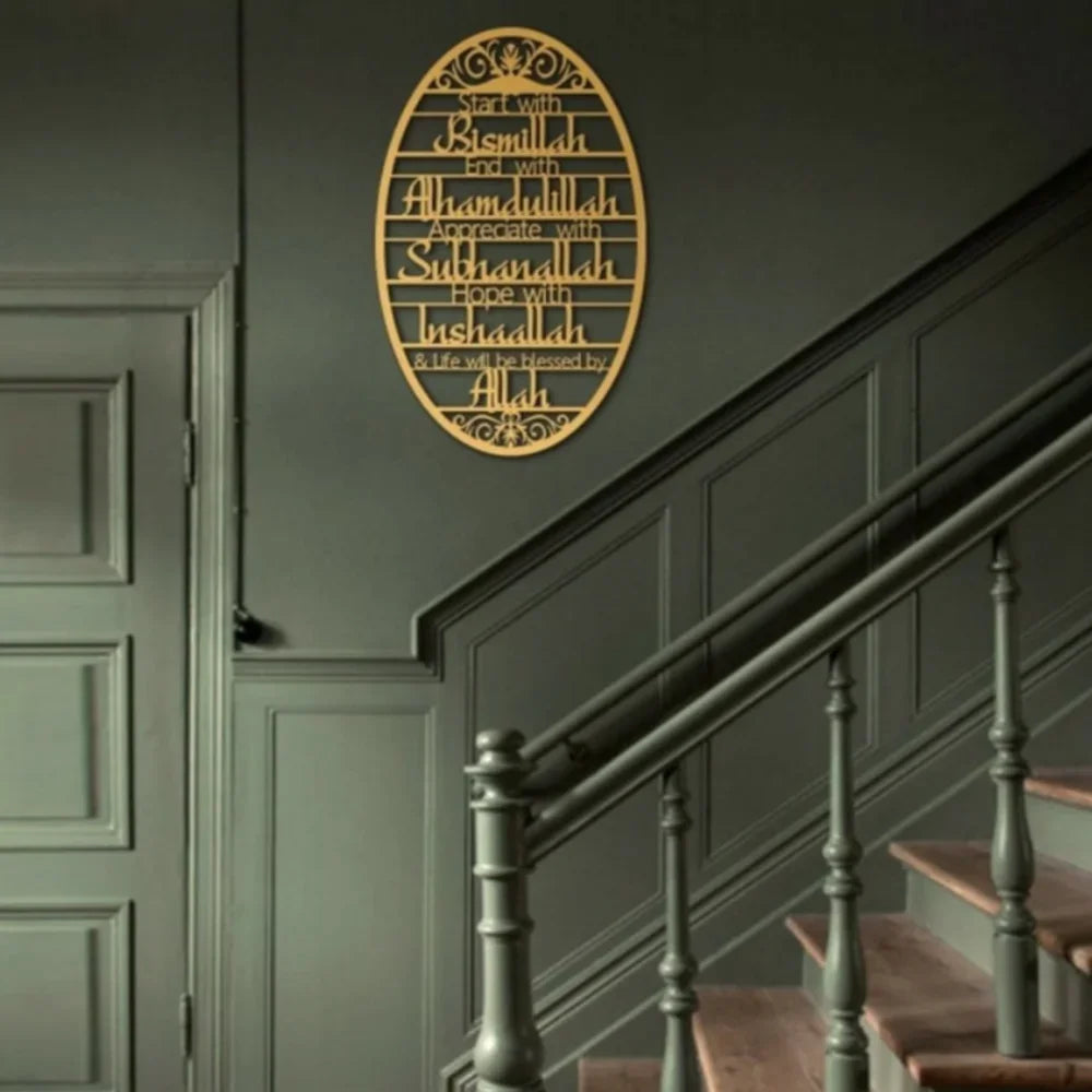 Invite Barakah into Your Home: Featuring the powerful and blessed phrase "Bismillah," this piece serves as a constant reminder to begin all your actions in Allah's name, transforming your home into a sanctuary filled with divine blessings.